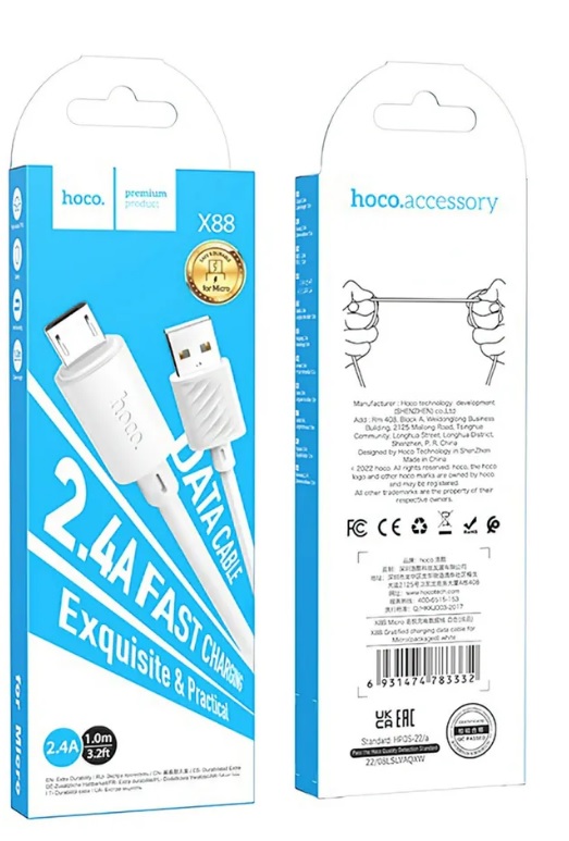 Кабель USB HOCO (X88) microUSB (1м) (белый)